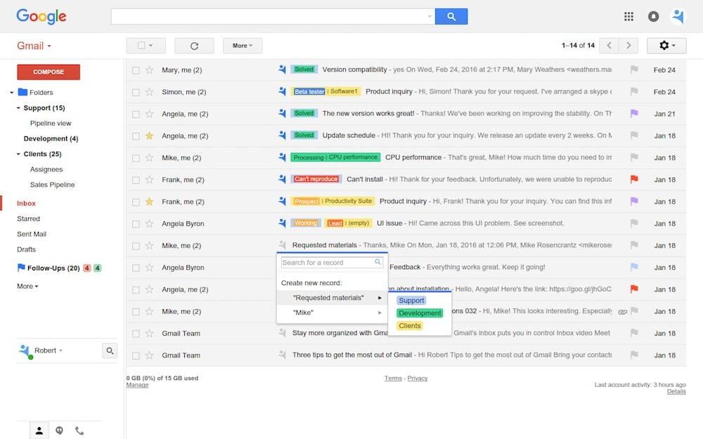 When working with a typical CRM for sales, each time you need to link an email to the customer record you have to BCC it to a special address provided by the CRM system. Each time you want to send an email while looking at the CRM data, you either need to switch between tabs or use the subpar built-in email client in the CRM. This is not the case with the inbox CRM systems.